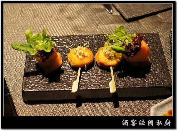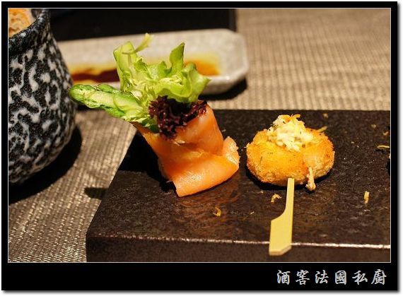 Tapis開胃小品--燻鮭魚蔬菜捲&百里香起司雞肉串