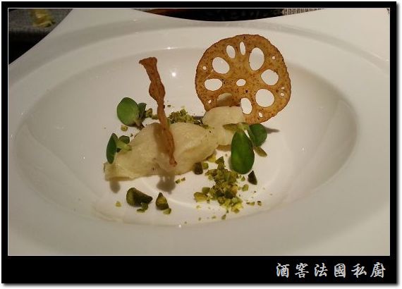 有馬鈴薯泥葵花苗和開心果,以及蓮藕片...