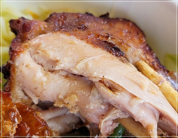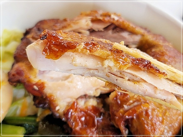 脆皮雞腿也很大隻,店家先滷過再用自己特製的脆皮水將雞腿浸泡過