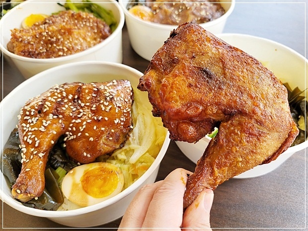 烤雞腿大隻不說,店家會先將雞腿肉先滷過再烤得香噴噴,將雞肉的肉汁鎖住