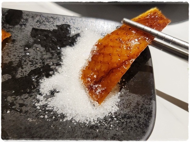 鴨皮沾著白糖一起吃,鹹香甜甜的香脆口感倒還是第一次這麼吃~