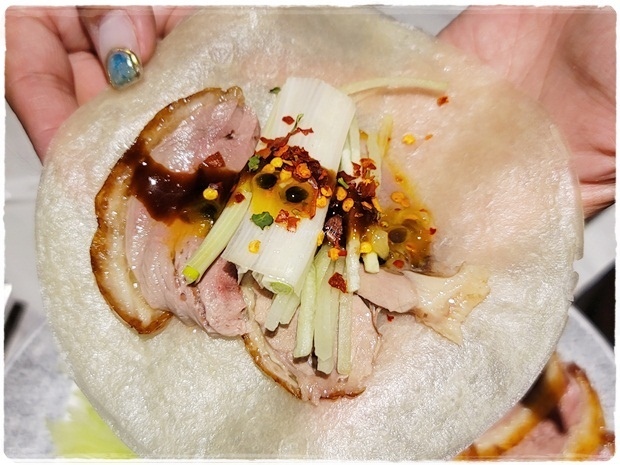 片鴨夾餅的醬料也淋上百香果醬料吃看看,多了一股酸甜的口感,可以來試看看哦~
